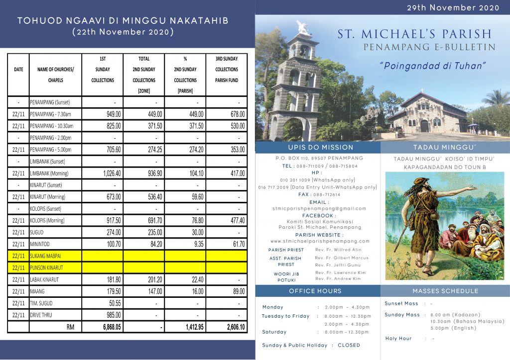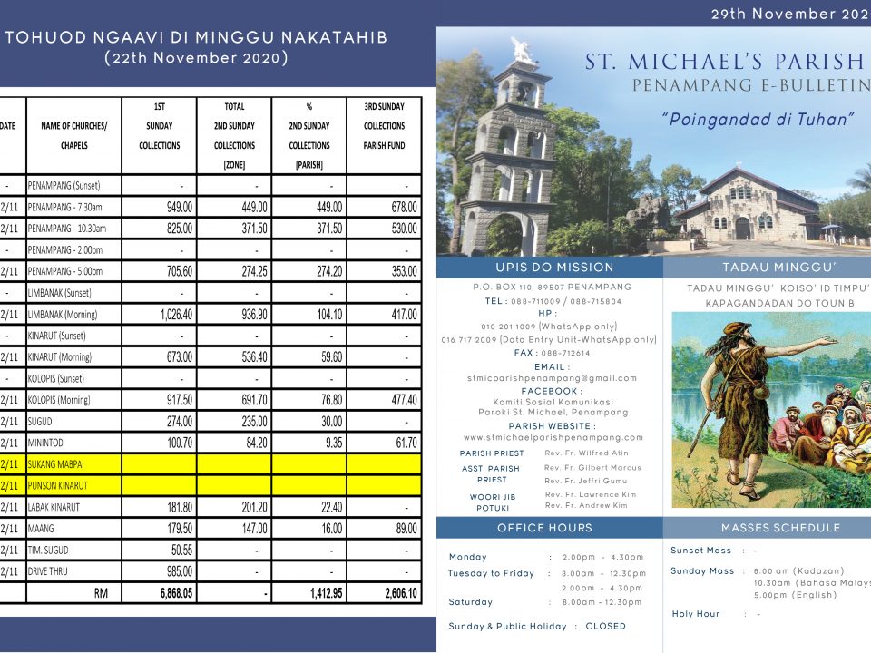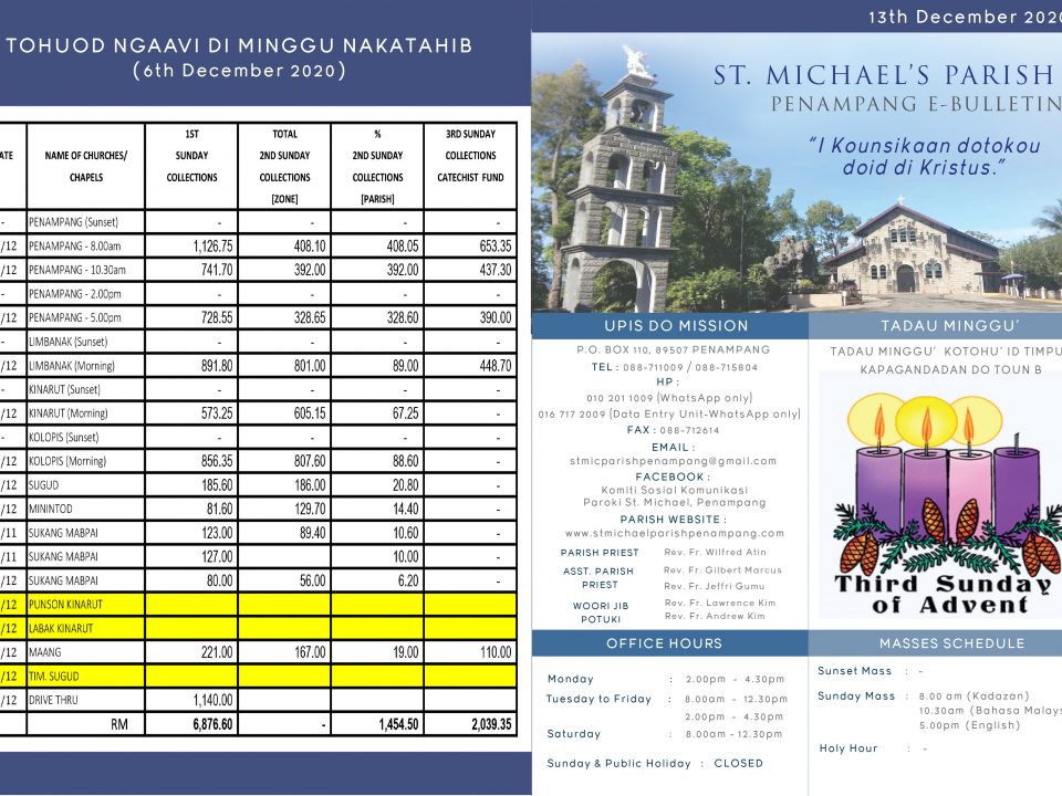 Untuk sebarang pertanyaan, umat bolehlah menghubungi terus ke Pejabat Mission Penampang: St. Michael’s Mission OfficeJalan Dakata, P.O.Box 110, 89507Penampang, Sabah, Malaysia Tel: 088-711009/715804HP: 010 200 1924 […]